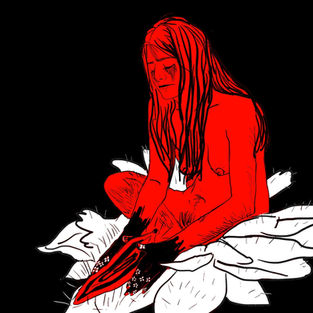 However, this exploration is not one-dimensional. Intermittently, the intensity deviates towards darker territories: suicidal, bloody, and psychologically violent drawings.